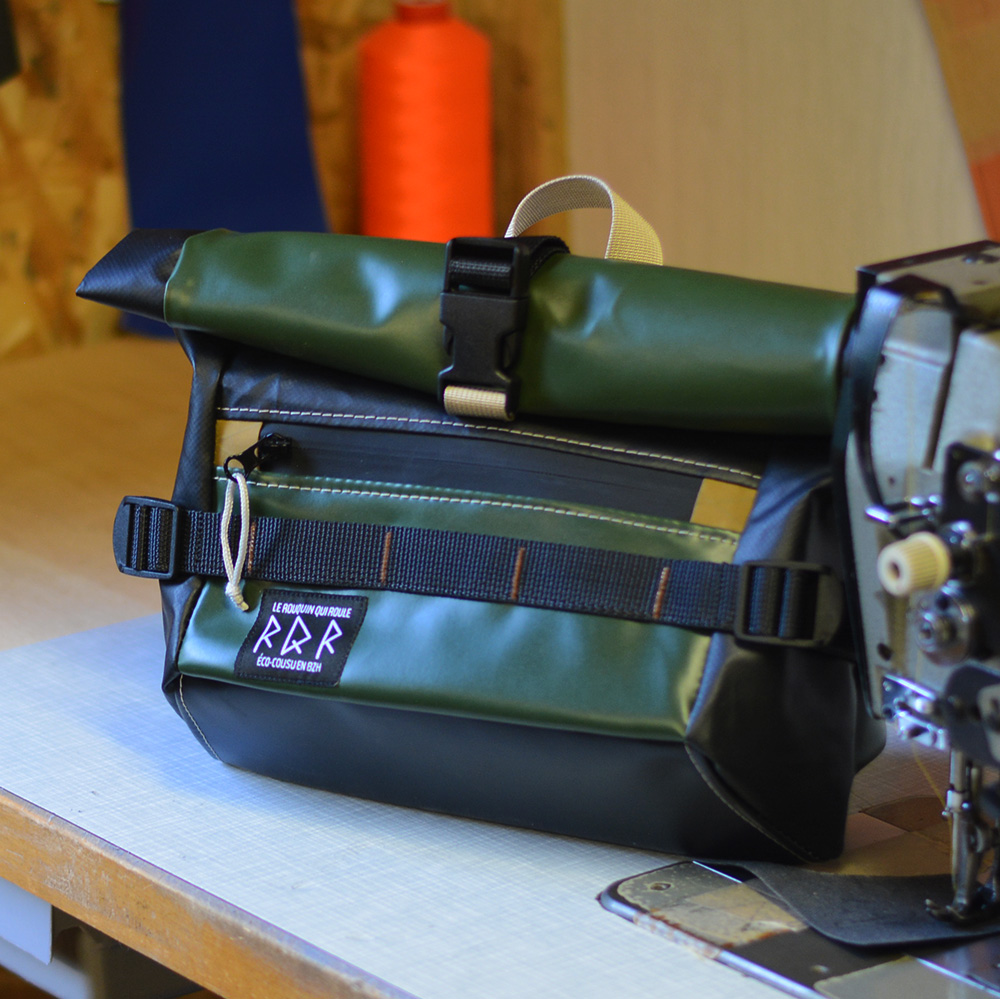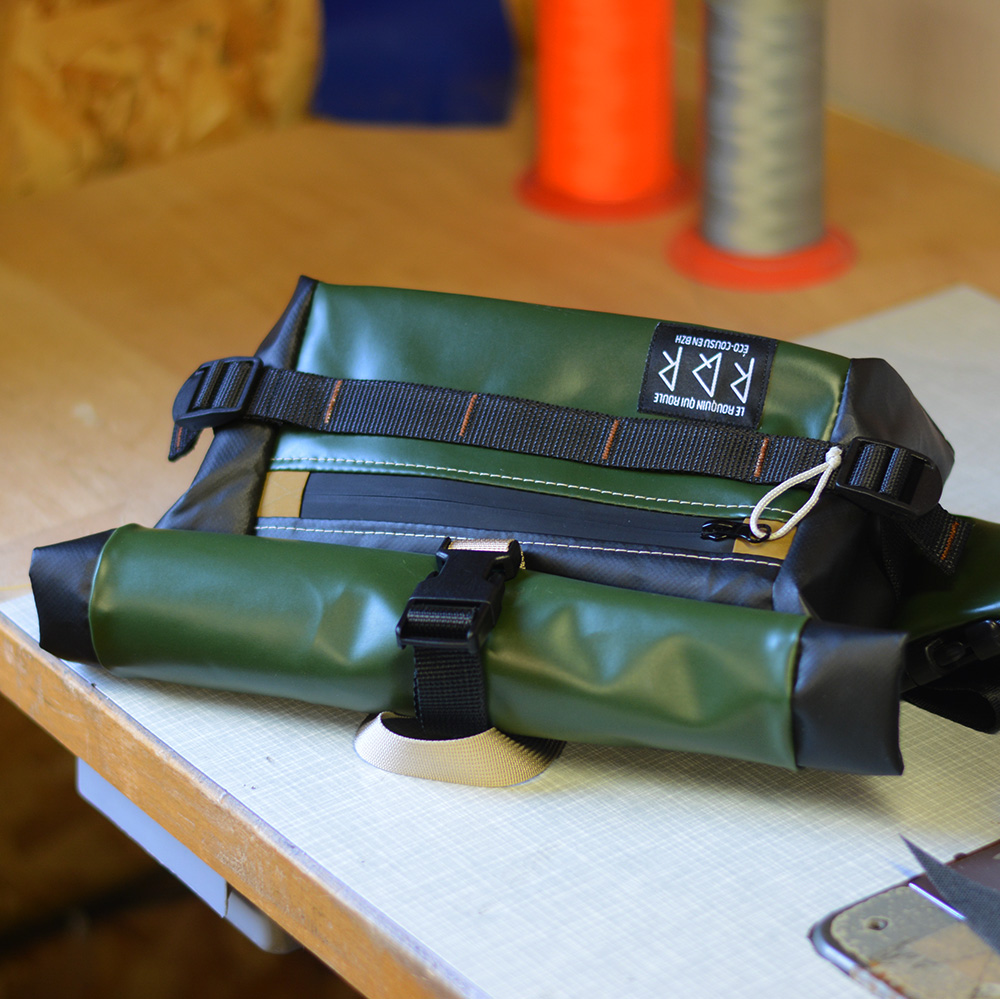 Ces sacoches sont des créations originales cousues dans mon atelier en Centre Bretagne. Elles sont conçues à partir de matériaux techniques issus de l’économie circulaire: