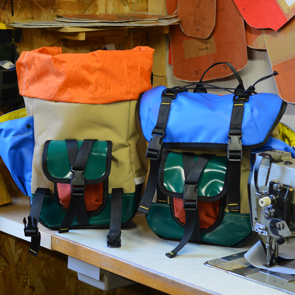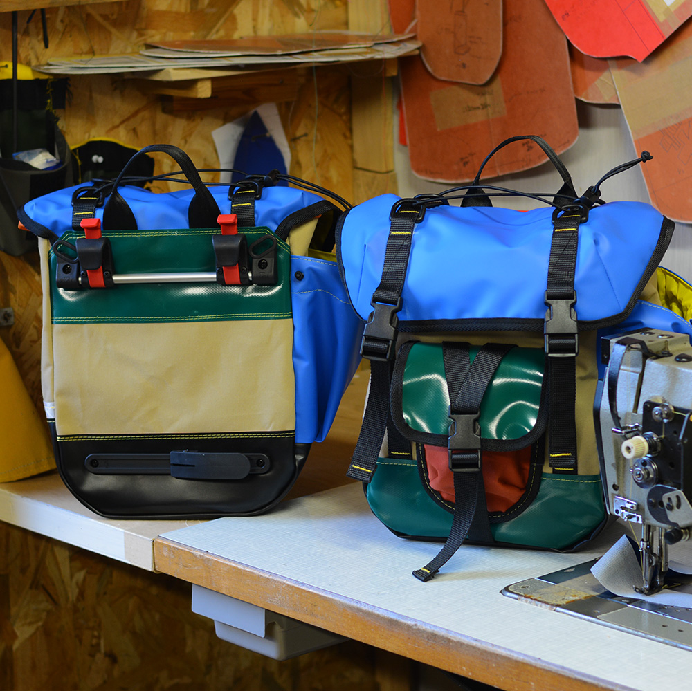 Toutes les sacoches sont cousues en centre Bretagne. Elles sont fabriquées à partir de chutes de tissus et matériaux techniques neufs mais récupérés. Il s’agit d’un travail artisanal dans un état d’esprit d’économie circulaire afin de tendre vers le zéro déchet.